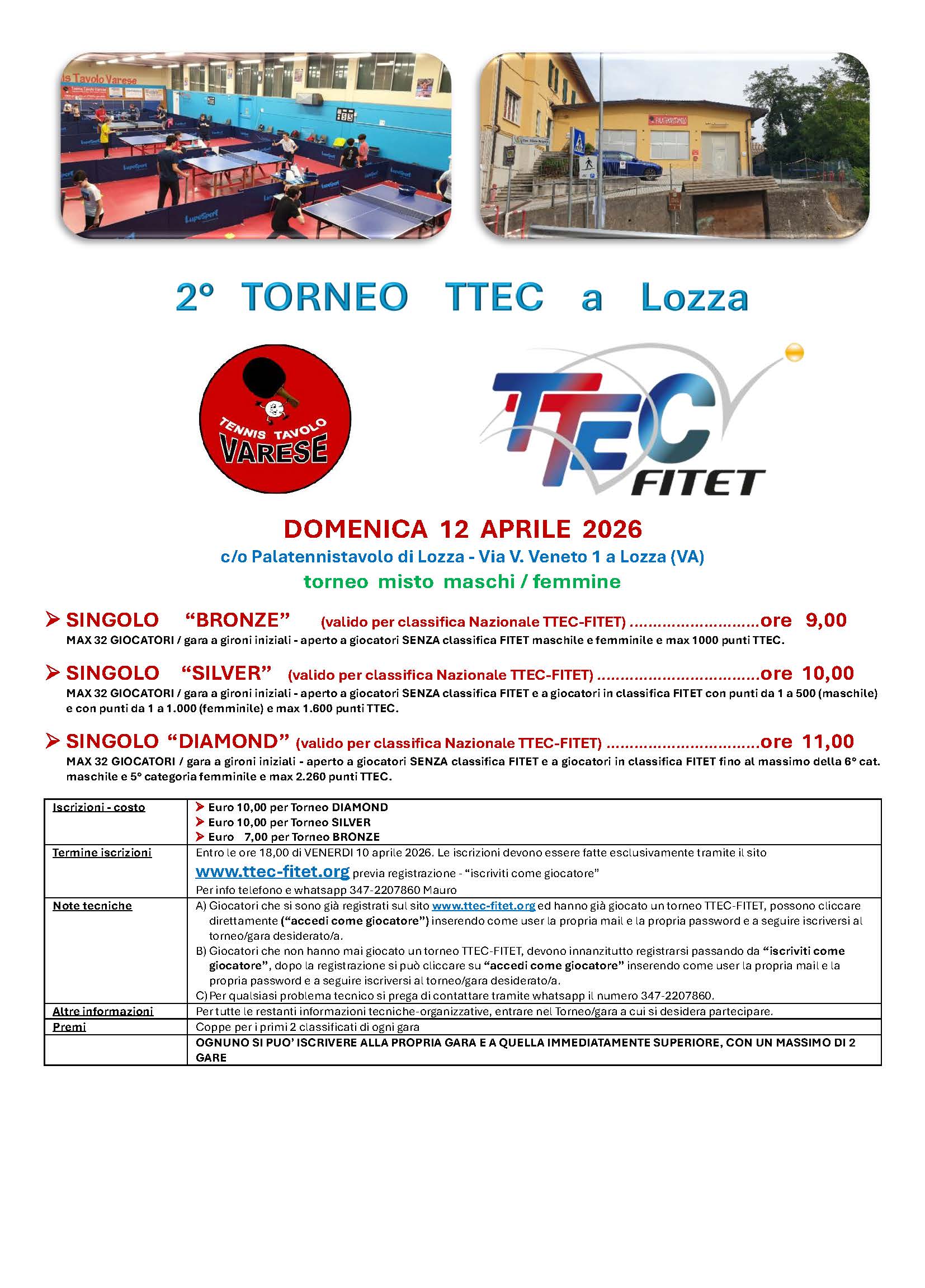 85° TAPPA ASD Tennis Tavolo Varese 2° GIORNATA |